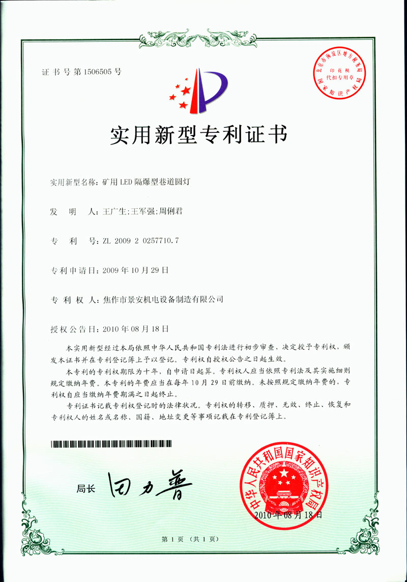 焦作景安公司始終堅持“以科技為先導,以市場為導向”的發展戰略,不斷進行新產品的研制和開發,在國家“六五”到“九五”期間,承擔和參與了國家多項科技攻關項目。并被中國電器工業協會評定為“質量可信產品”。特別是在礦用防爆燈領域,礦用隔爆型半導體(LED)照明燈具,2008年列入國家火炬計劃,獲2009年河南省工業和信息化廳的科技成果二等獎,并擁有多項國家專利。